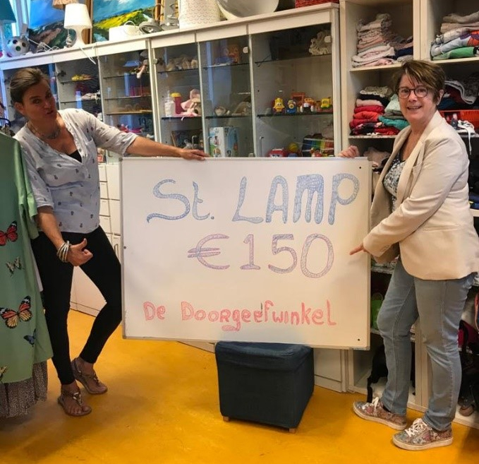 Frank mocht als voorzitter een cheque van 150 euro ontvangen voor Stichting LAMP. Dat noemen we nog eens een superverrassing. Dank je wel, Nina en je team voor dit mooie sponsorbedrag. We gaan het bedrag besteden aan een studiebeurs!