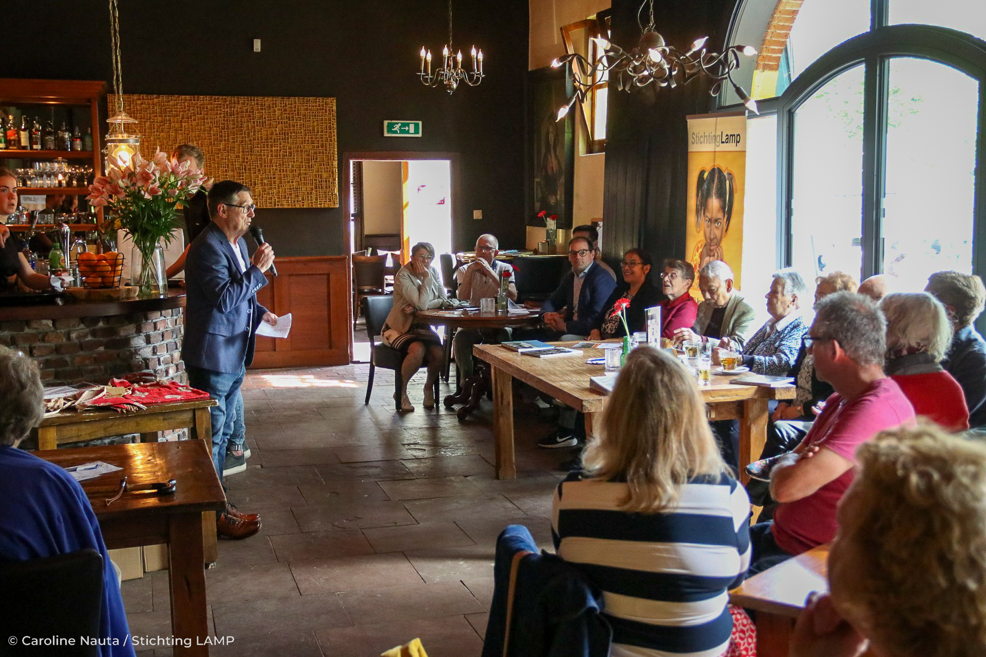 SLOCHTEREN – Op 10 mei 2024 vond een bijzonder LAMP evenement plaats op een bijzondere locatie. Bij de borg in Slochteren verzamelden zich niet alleen de huidige bestuursleden, maar ook oud-bestuursleden, sponsoren en de oprichters van Stichting LAMP, Dr. Prakash Das en Margaret Das- Loughlin zich voor de feestelijke uitreiking van het 30 jarig jubileumboek.