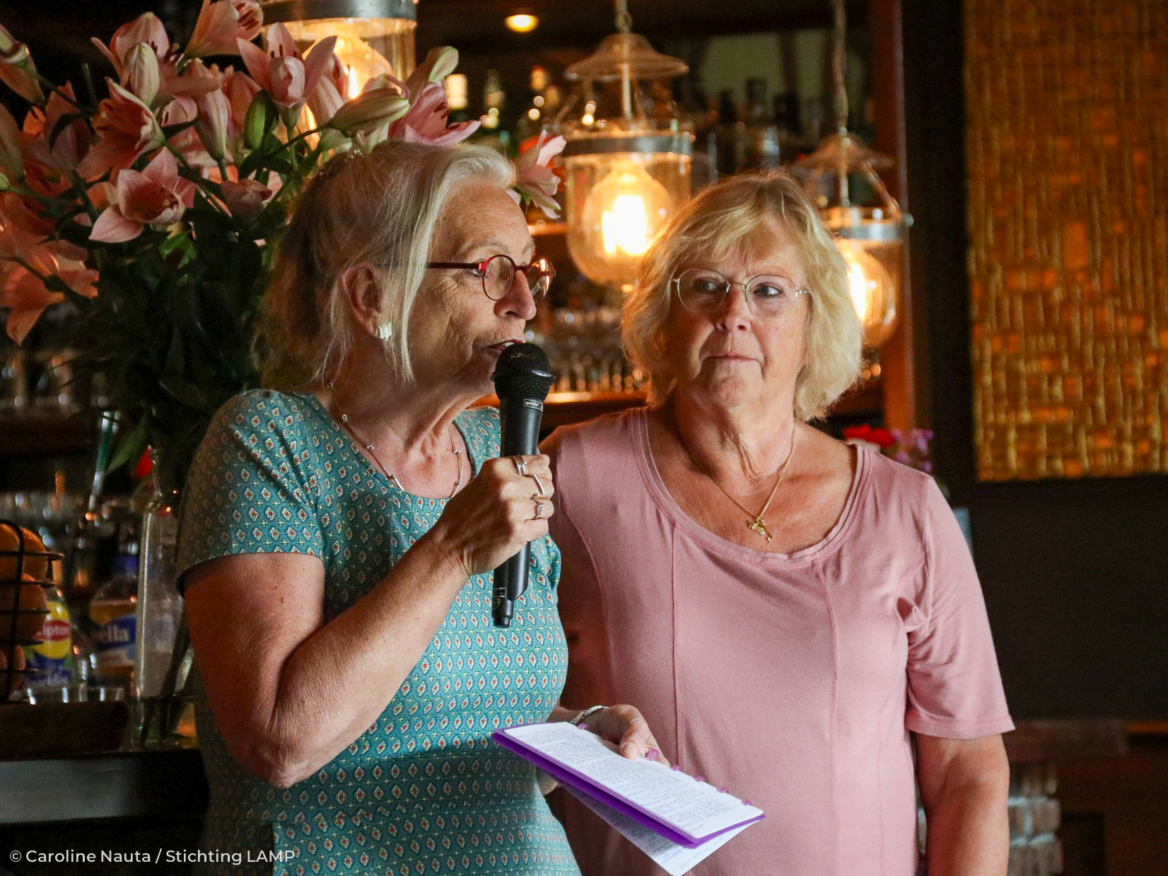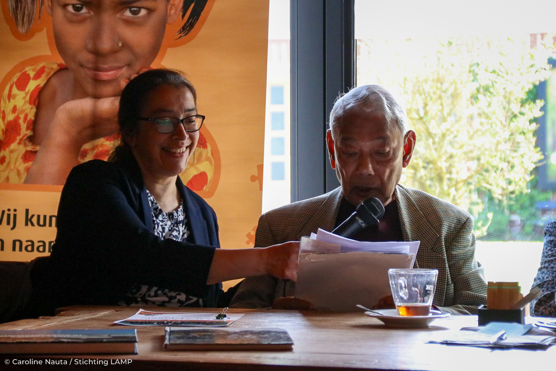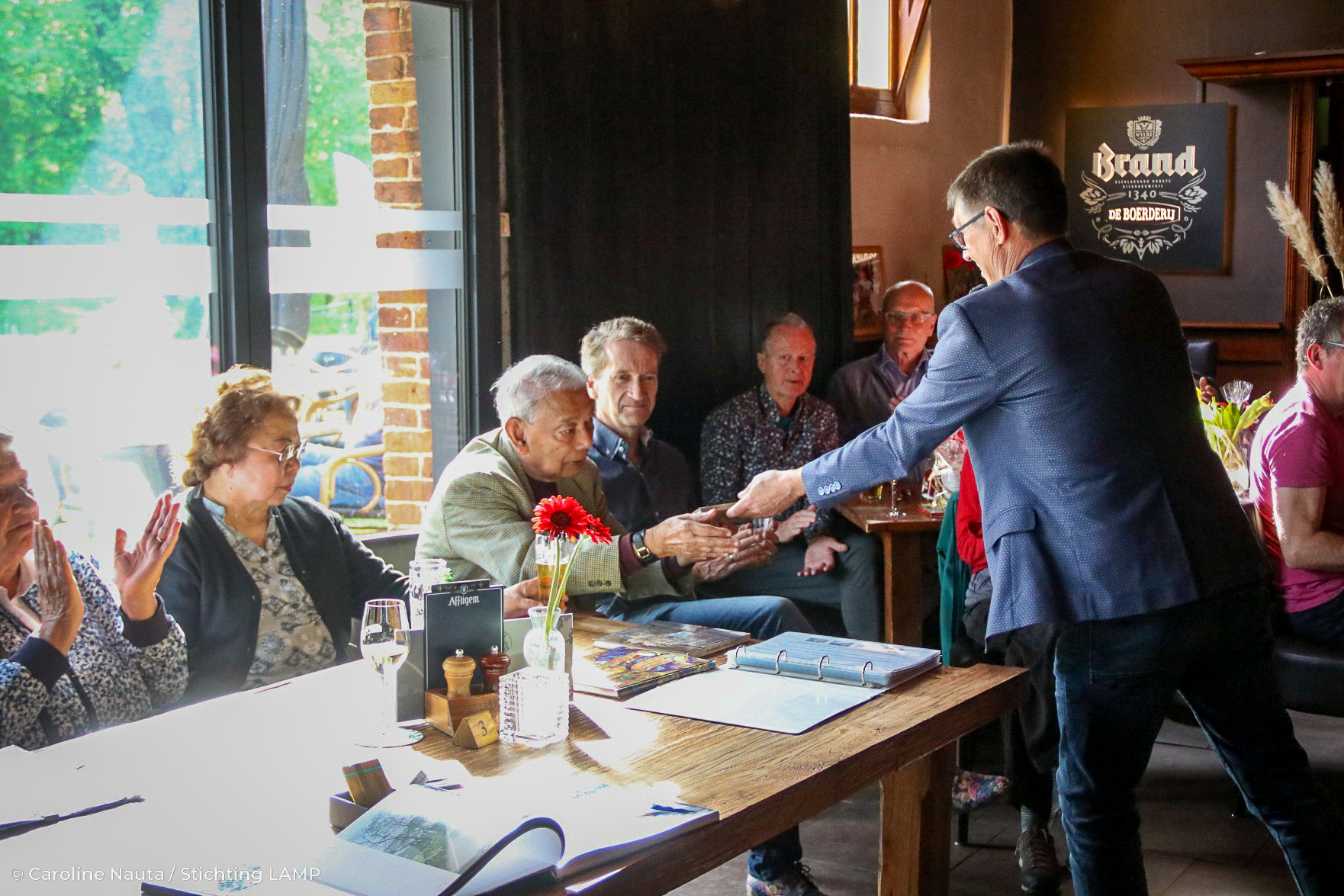 Vanzelfsprekend werd het eerste jubileumboek dan ook uitgereikt aan Dr. Das en Margaret. Auteur Sjikke Mulder en vormgeefster Martina van Galen vertelden hoe het was om het boek te maken, hoeveel tijd het heeft gekost om iedereen te interviewen en al het beeldmateriaal bij elkaar te verzamelen. Maar wat een prachtig resultaat is het geworden! Dank hiervoor, Sjikke en Martina!