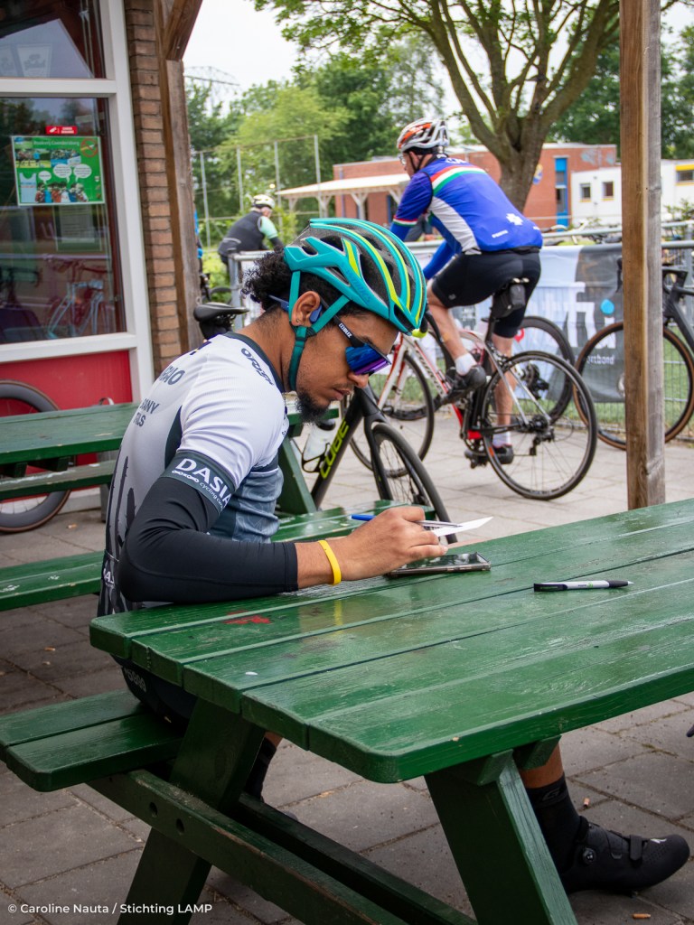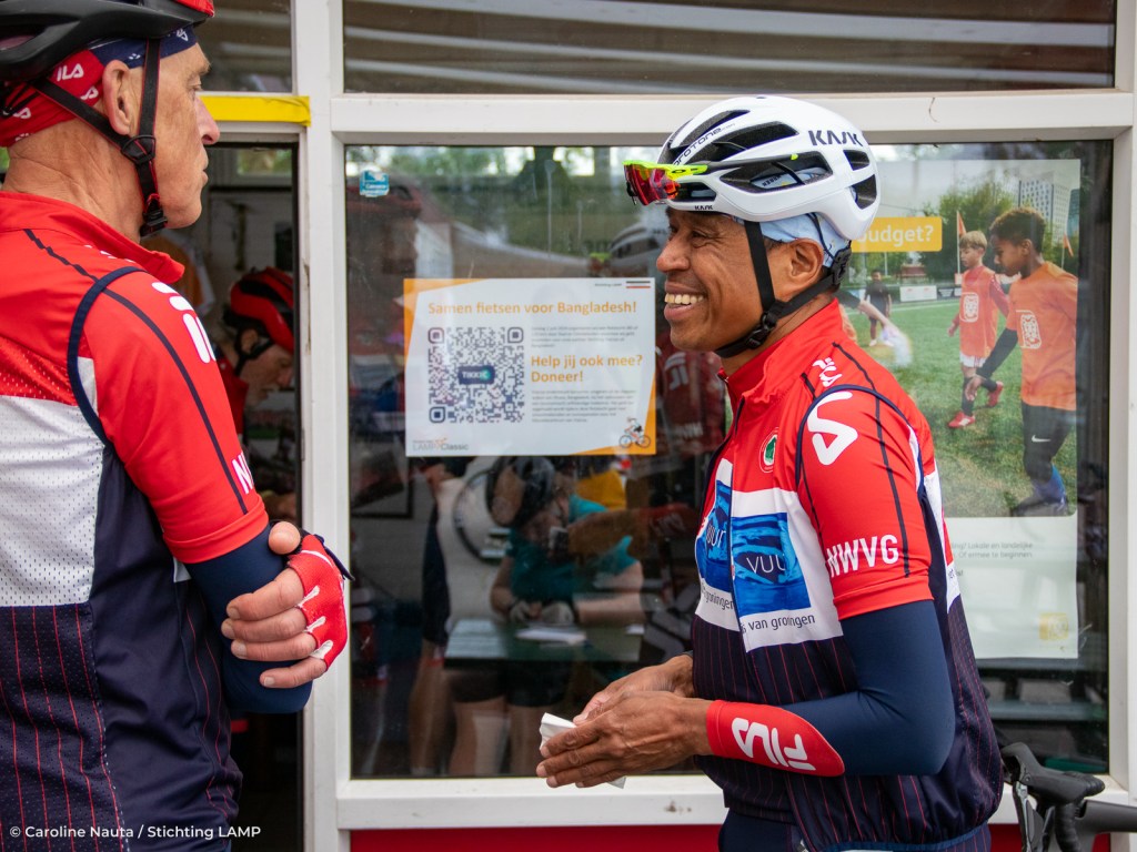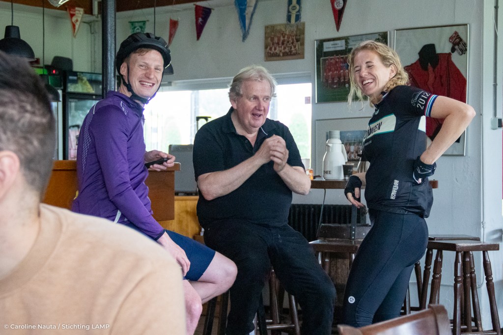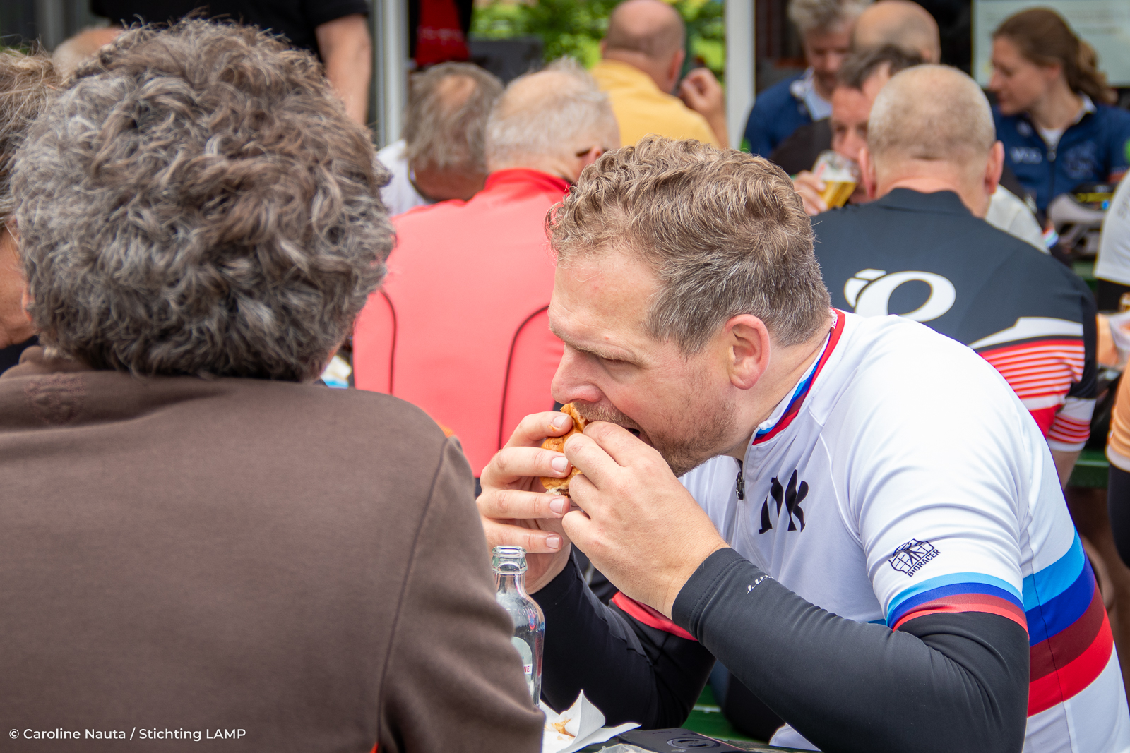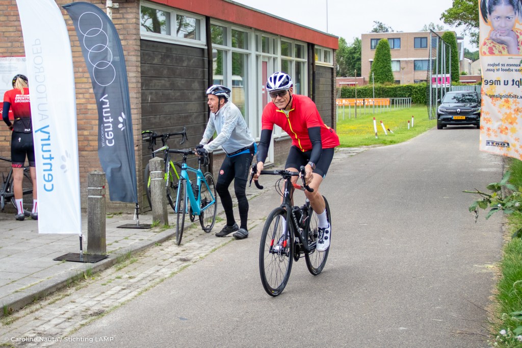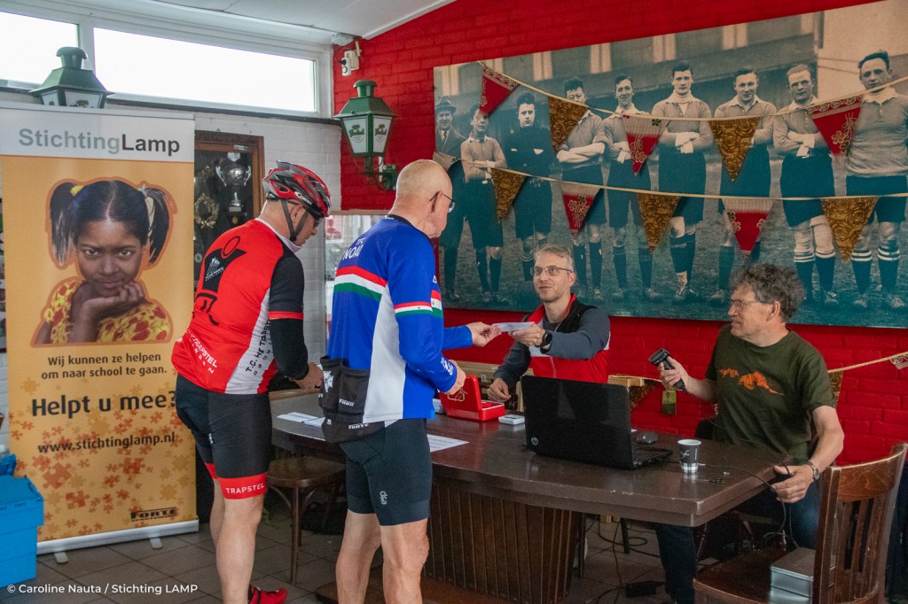 De fietstocht eindigde weer bij Amicitia, waar rijders werden ontvangen met een heerlijk broodje hamburger en een drankje naar keuze. Bij terugkomst werd ook een prachtig bedrag onthult voor het goede doel, Stichting ViaLisa, waarvoor de LAMP CLassic gefietst werd. Met de hulp van ambassadeur André Kistemaker is er ruim €6000,- opgehaald! Met dit geld zullen schoomaterialen voor ViaLisa’s Educatiecentrum in Dhaka, Bangladesh worden bekostigd en zullen er nieuwe zonnepanelen geplaatst worden op het dak.