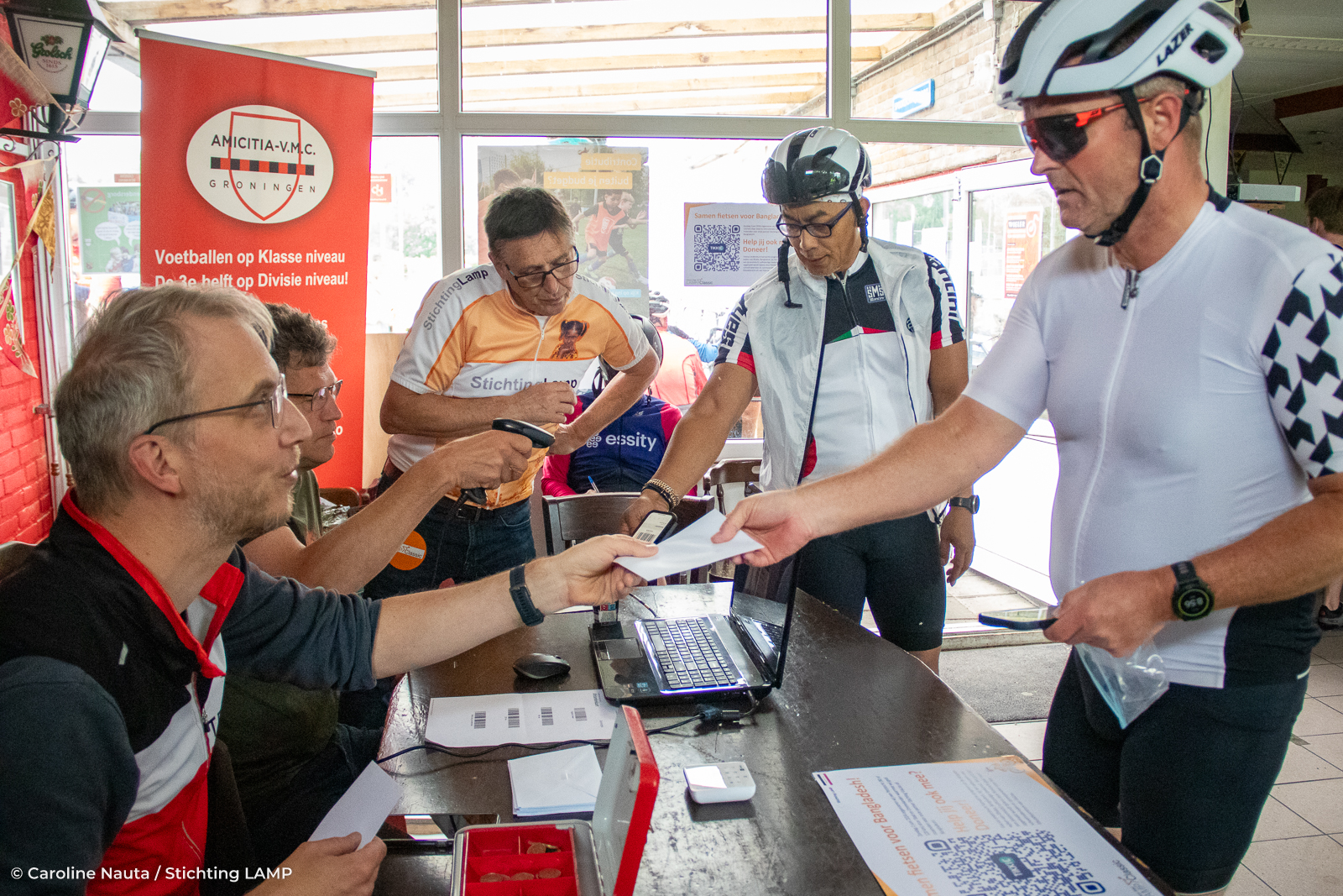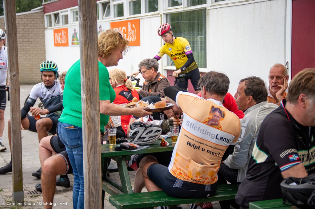 In samenwerking met fietsclub Het Trapstel stond er weer een goed verzorgde LAMP Classic gereed. Om 08.00 uur stonden onze vrijwilligers al klaar met koffie, thee, koek en fruit zodat de deelnemers goed verzorgd op pad konden worden gestuurd. Een prachtige route was uitgezet langs verschillende Groningse dorpen en wateren. Bij de tussenstop bij Paviljoen De Leine konden deelnemers even opladen met een drankje en een kleine snack, alvorens ze de tocht weer voortzetten.