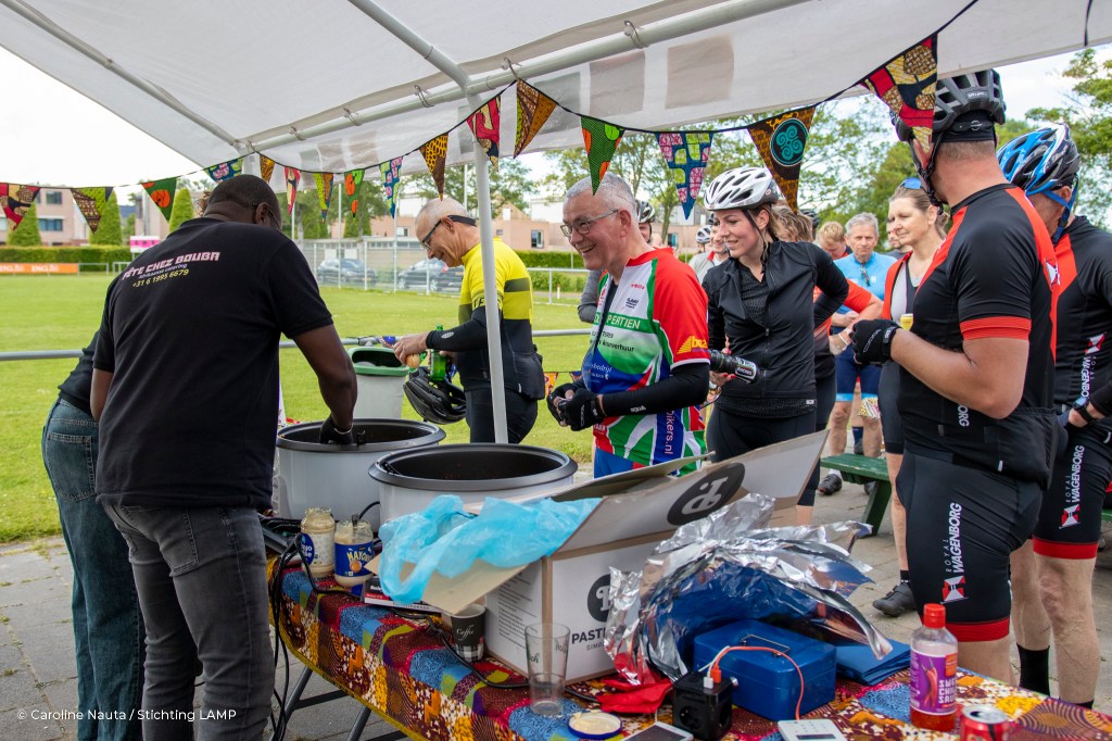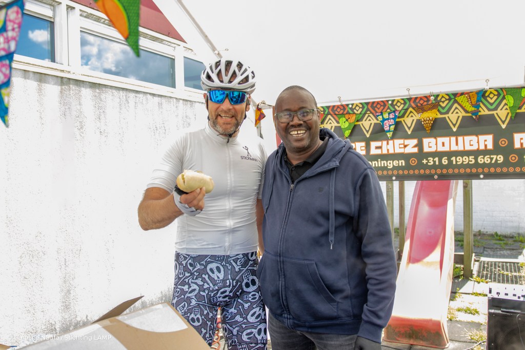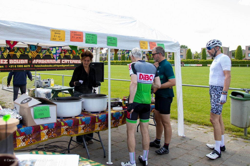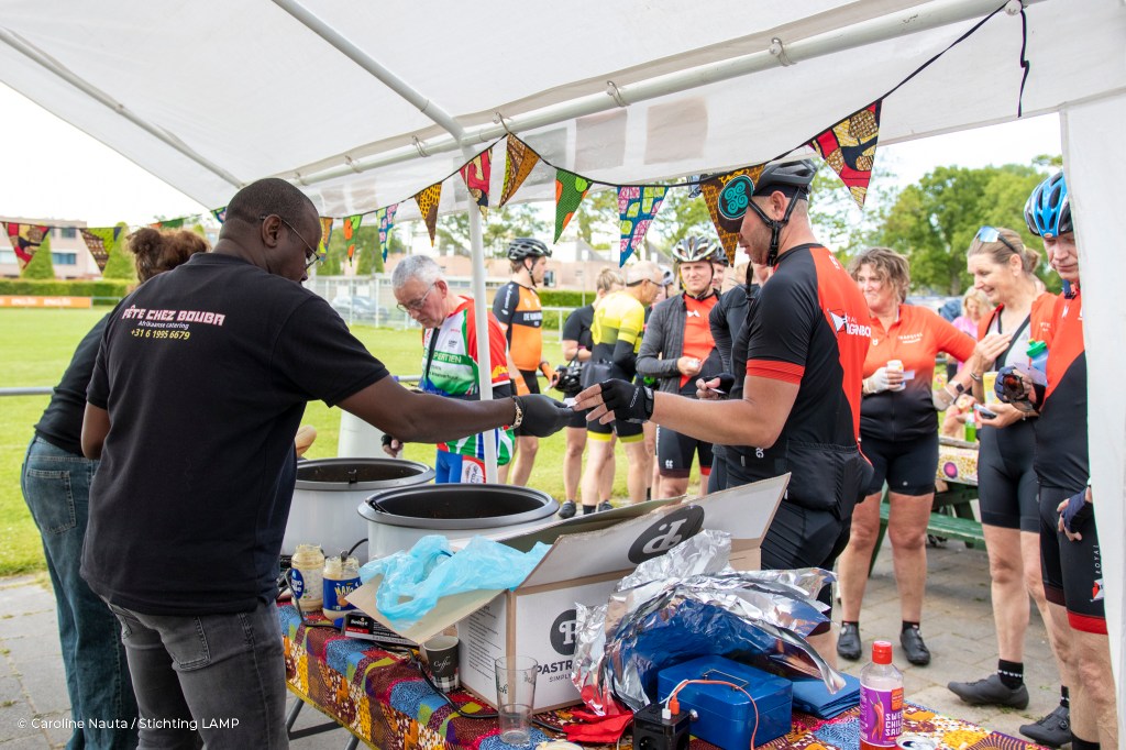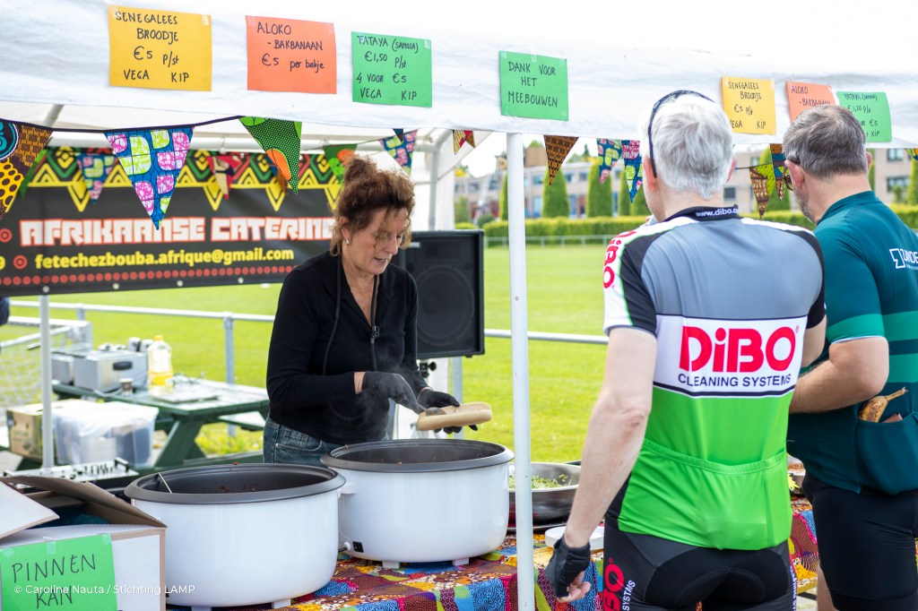 Na afloop van de tocht konden de rijders genieten van een heerlijke Senegaleese broodjes, samosa’s en bakbanaan, verzorgd door Bouba van Fête Chez Bouba Catering.