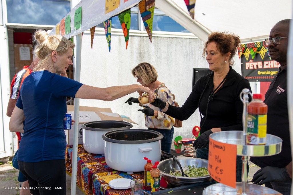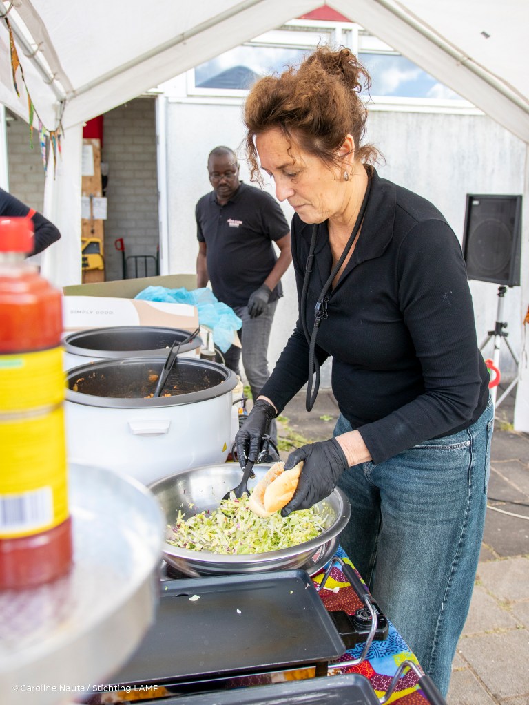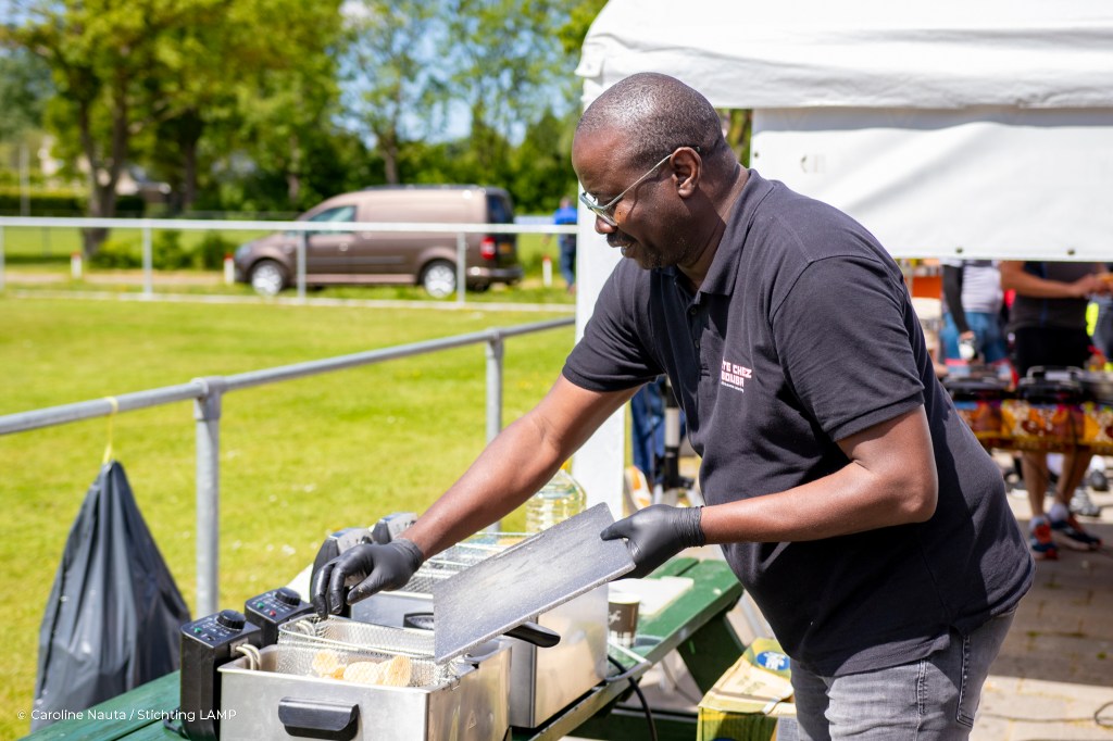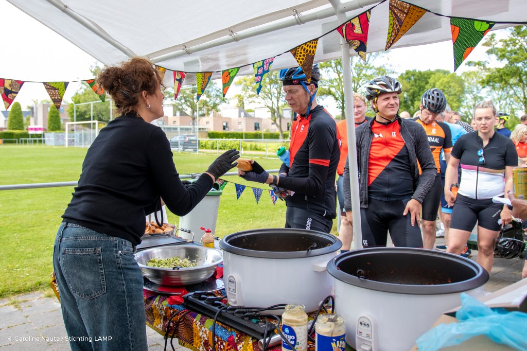Na afloop van de tocht konden de rijders genieten van een heerlijke Senegaleese broodjes, samosa’s en bakbanaan, verzorgd door Bouba van Fête Chez Bouba Catering.